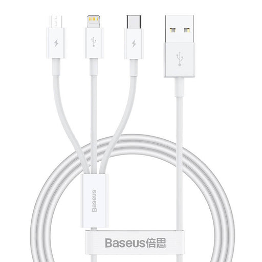 BaseusOut of stockCharging Cable 3-in-1 Baseus USB to USB-C, USB-M, Lightning 3,5A, 1,1m (White) Charge your device and transfer data. The cable offers 3 output port...