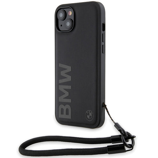BMW Signature Leather Wordmark Cord Case for iPhone 15/14/13 - Black