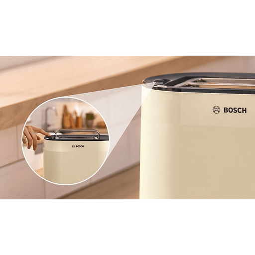 Bosch TAT2M127, MyMoment Compact toaster, 950 W, Auto power off, Defrost and reheat setting, Integrated warming grid, High lift, Cream