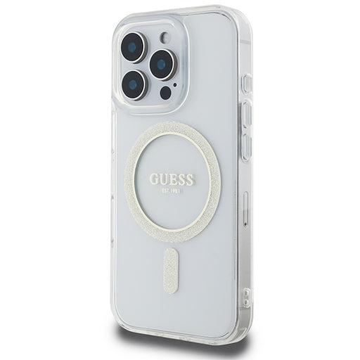 Guess IML Glitter Circle MagSafe Case for iPhone 16 Pro Max - Clear