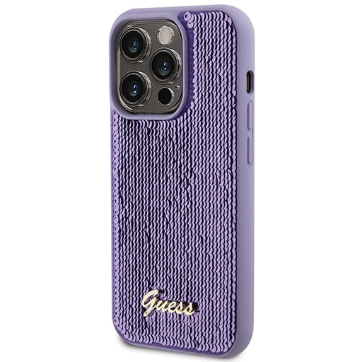 Guess Sequin Script Metal case for iPhone 15 Pro - purple