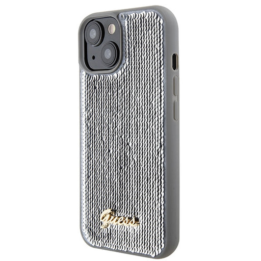 Guess Sequin Script Metal case for iPhone 15 - silver