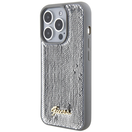 Guess Sequin Script Metal case for iPhone 15 Pro - silver