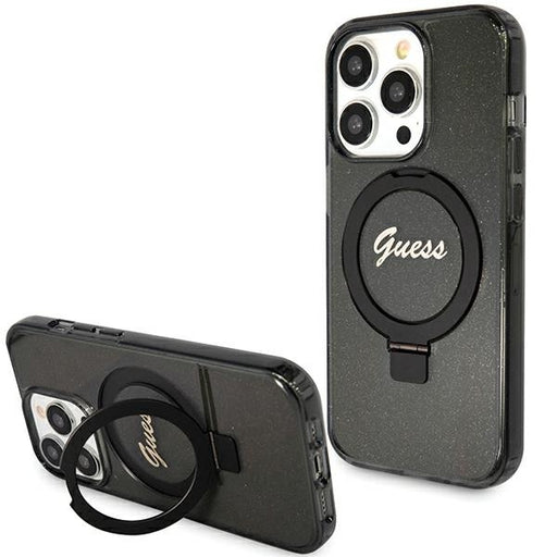 Guess Ring Stand Script Glitter MagSafe case for iPhone 15 Pro Max - black