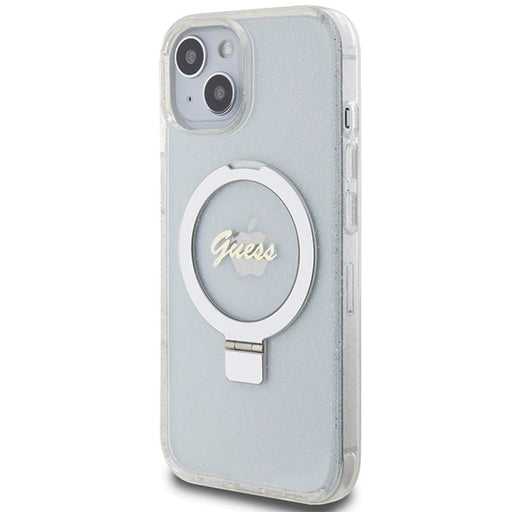 Guess Ring Stand Script Glitter MagSafe case for iPhone 15 / 14 / 13 - transparent