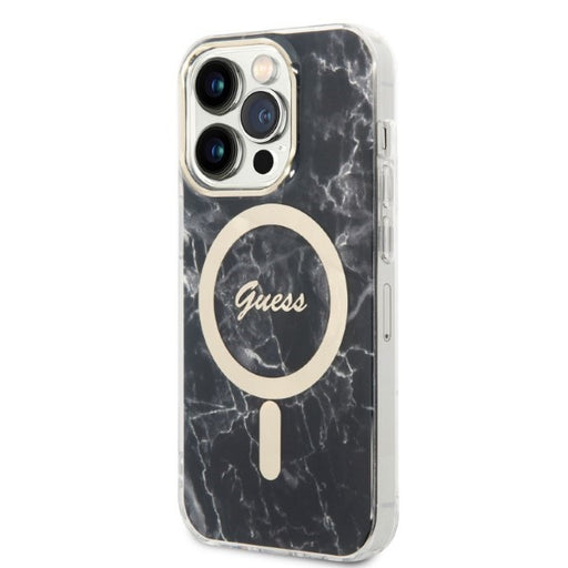 Set Guess GUBPP14XHMEACSK Case+ Charger iPhone 14 Pro Max 6.7" black/black hard case Marble MagSafe