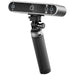 Skaner Revopoint Pop 3 Plus stojący na stojaku na czarnym tle.