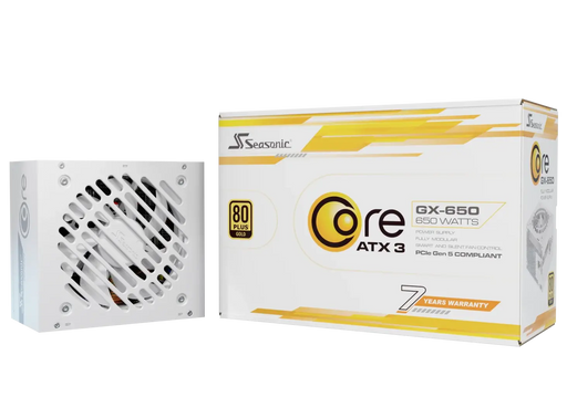 Seasonic CORE GX White ATX 3.1 650W is a fully modular power supply unit that meets the ATX 3.1 and PCIe 5.1 standards . It offers 80 PLUS Gold cer...