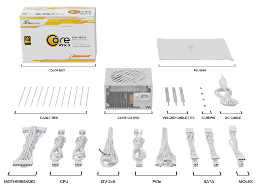 Seasonic CORE GX White 850W is a fully modular power supply unit that meets the ATX 3.1 and PCIe 5.1 standards . It offers 80 PLUS Gold certificati...