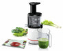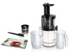 Bosch MESM500W, Slow juicer VitaExtract 150 W, 55 rpm, 1 speed + reverse function, tritan screw, MixControl lever, juice container 1 l, pulp container 1,3l, 2 filters (fine, coarse), white / black