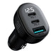 Joyroom JR-CCD04 car charger with power up to 30W with 3 ports (2x USB-C, USB-A) and display - black